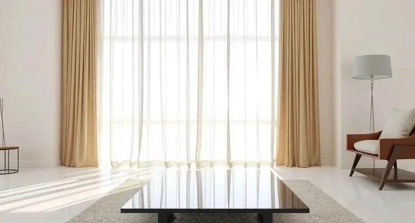 Выбирайте легкие, полупрозрачные ткани, которые пропускают максимум света. Можно использовать римские шторы или жалюзи для регулировки освещенности.