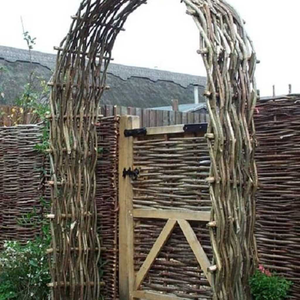 Очень модно смотрится арка, плетенная из лозы. Подобное сооружение — настоящая изюминка для любителей отделки в деревенском стиле.