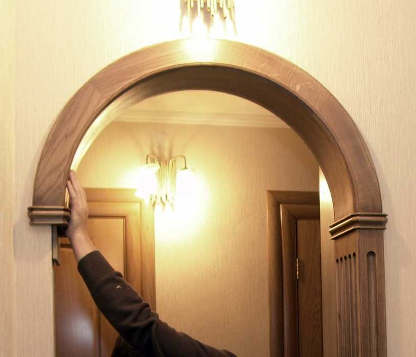 Для межкомнатных дверных проходов используются скругленные деревянные основания. Своими руками сделать изгиб в такой конструкции легко при помощи арочных наличников. Декорировать готовое сооружении удается резьбой из дерева, стеклом, зеркальными элементами. К боковой части наличника можно также прикрепить полки, ниши и другие проемы. Такие деревянные конструкции наиболее приемлемы в невысоких квартирах. Для хозяина эта отличная возможность своими руками и без больших трудозатрат расширить жилое пространство.