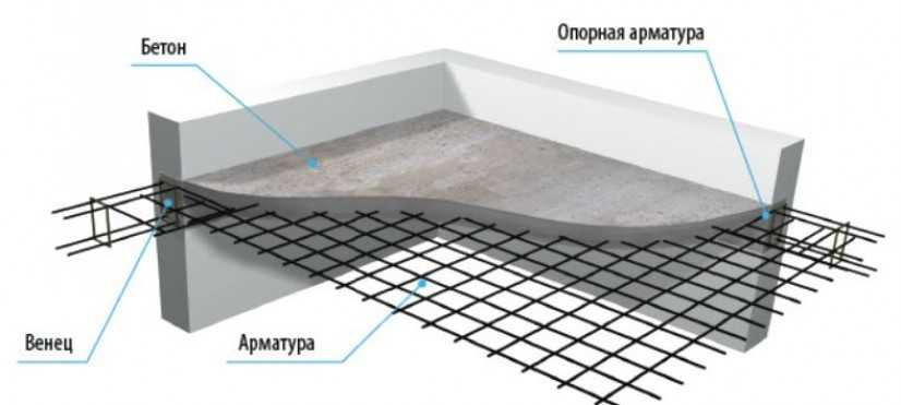 Арматура сверху и снизу должна быть покрыта раствором толщиной минимум 20 мм. При доступе воздуха на поверхности металла образуется коррозия, и начнется разрушение. При создании перекрытия толще 15 см, с армированием в 2 слоя, больше раствора распределяют вверху.