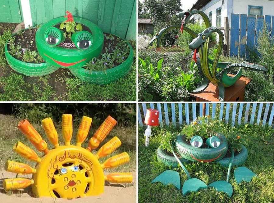 Старые шины являются уникальным материалом, из которого можно изготовить самые разные украшения для сада. Такой декор прекрасно украсит клумбу или пруд.