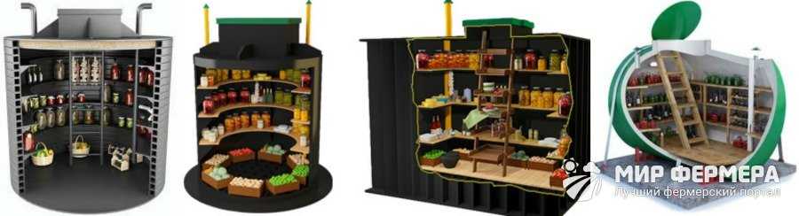 По конструкции он представляет собой короб со стенками средней толщины. Внутри он оснащен всем необходимым для хранения урожая: лестницей с герметичной крышкой, вентиляционными отверстиями, полками и стеллажами. Кроме того, они представлены в широком разнообразии размеров, поэтому каждый владелец дачного участка сможет выбрать подходящую конструкцию (рисунок 1).