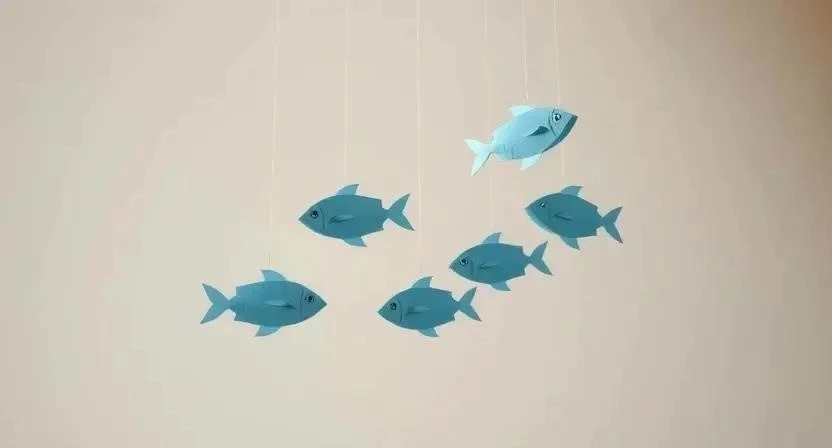 - Подвесные рыбки: Подвесьте к потолку рыбки из бумаги или ткани на нитках или леске.