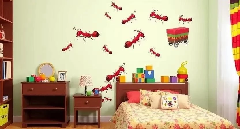 При выборе стиля декора с муравьями учитывайте общий стиль детской комнаты. Муравьи хорошо сочетаются с: