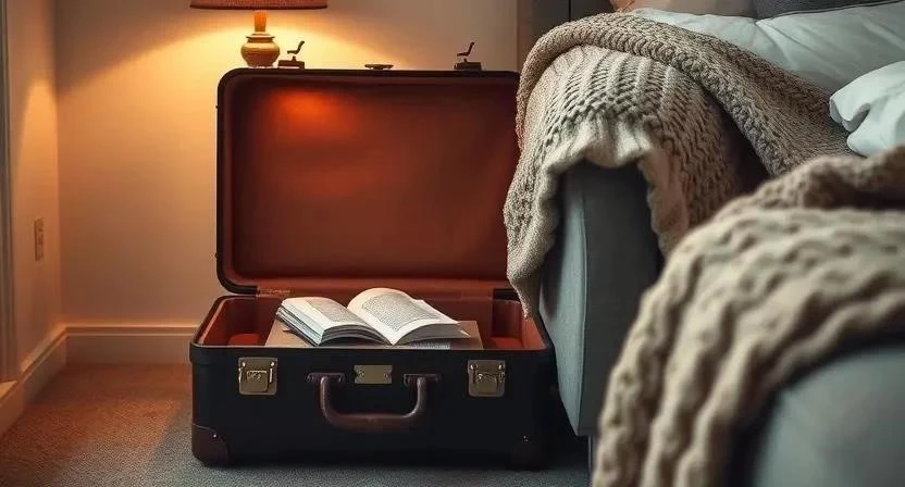 - Чемодан как прикроватная тумбочка: Чемодан, поставленный рядом с кроватью, может служить удобной и стильной прикроватной тумбочкой. Преимущества – оригинальный внешний вид и возможность хранения вещей внутри.