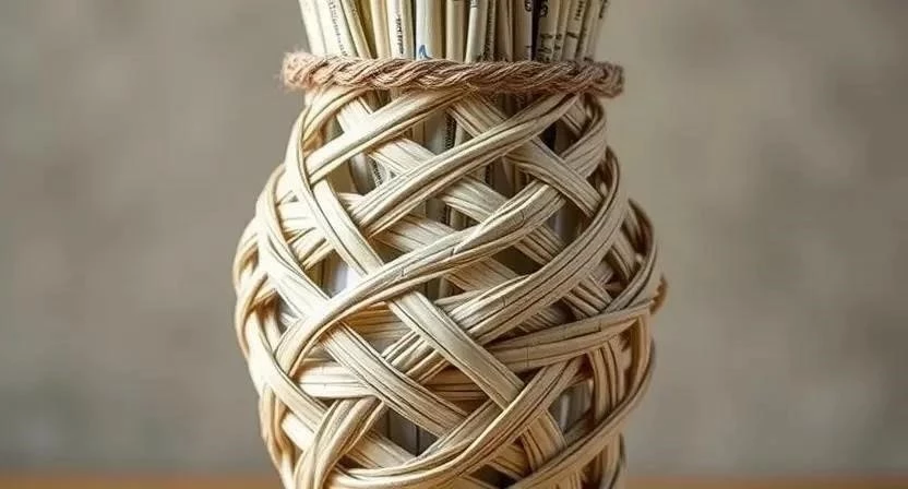 - Плетение: Эта техника предполагает переплетение газетных трубочек между собой, создавая различные формы и узоры. Плетение из газет – это древнее искусство, которое требует определенных навыков и терпения.