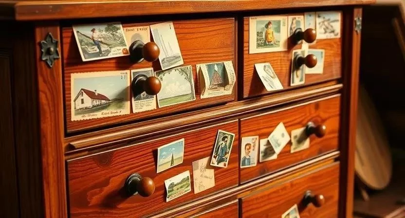 Открытки можно использовать для декора мебели. Например, можно приклеить открытки на дверцы комода или шкафа, создав эффект аппликации. Или же украсить столешницу открытками, покрыв их стеклом. Я однажды украсил старый комод открытками в стиле ретро. Он преобразился до неузнаваемости! Важно использовать клей, который не повредит поверхность мебели.