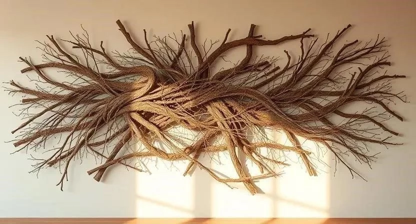 Декор стен из веток – это отличный способ создать уникальный акцент в интерьере. Можно сделать панно из веток, композиции в виде деревьев или использовать ветки в качестве вешалок для одежды и аксессуаров. Я помню, как однажды сделал панно из березовых веток, покрашенных в белый цвет. Оно прекрасно вписалось в мой скандинавский интерьер и стало его изюминкой. Можно создать целую галерею из веток, добавив фотографии или картины. Важно подобрать ветки, которые гармонируют с общим стилем комнаты.