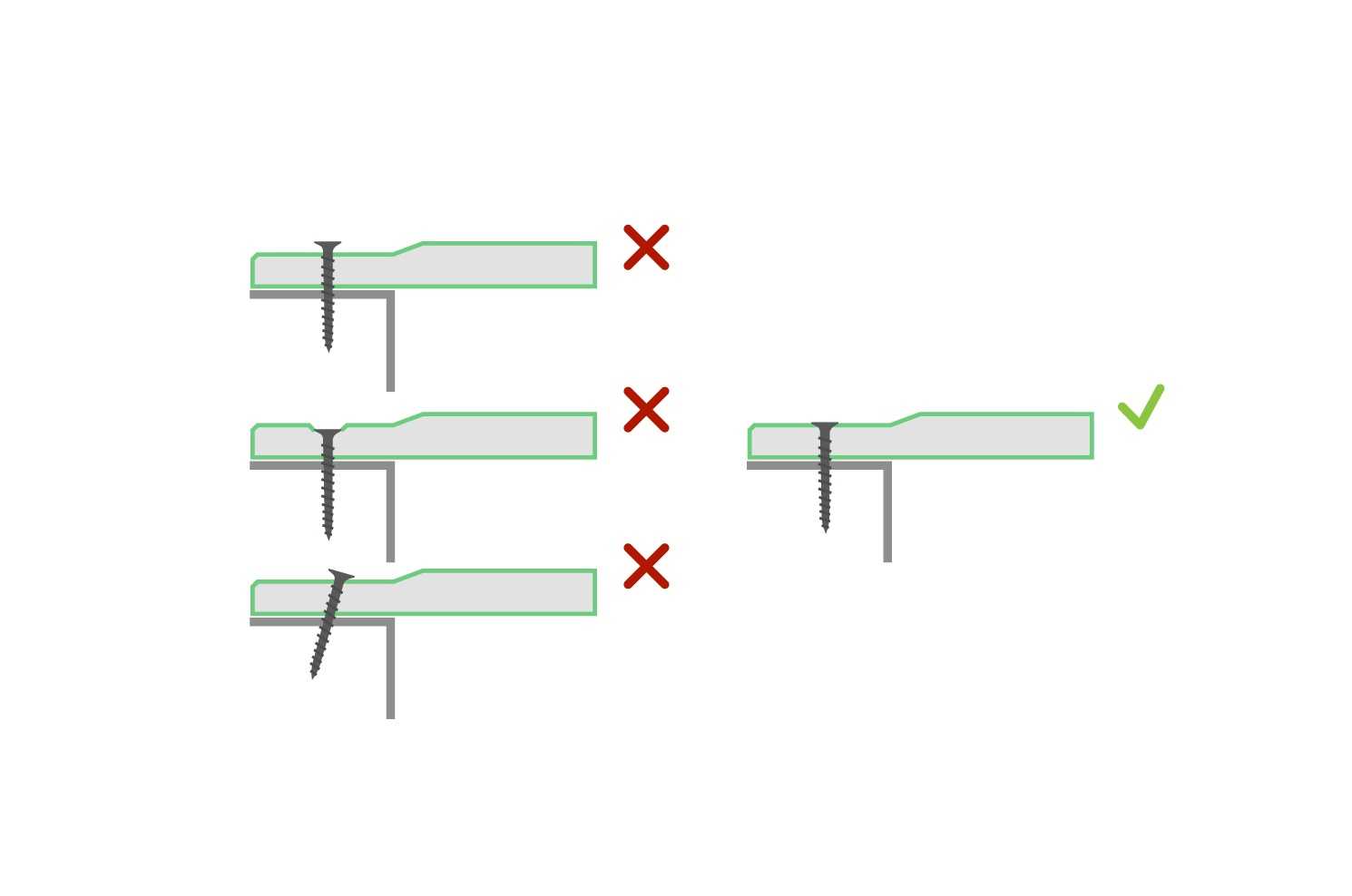 - неправильно вкрученный саморез (торчит над краем или заглублён слишком сильно);