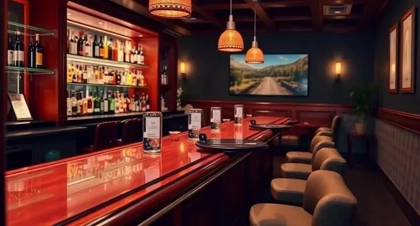 - Барная стойка: Функциональная и привлекательная, с удобными стульями.