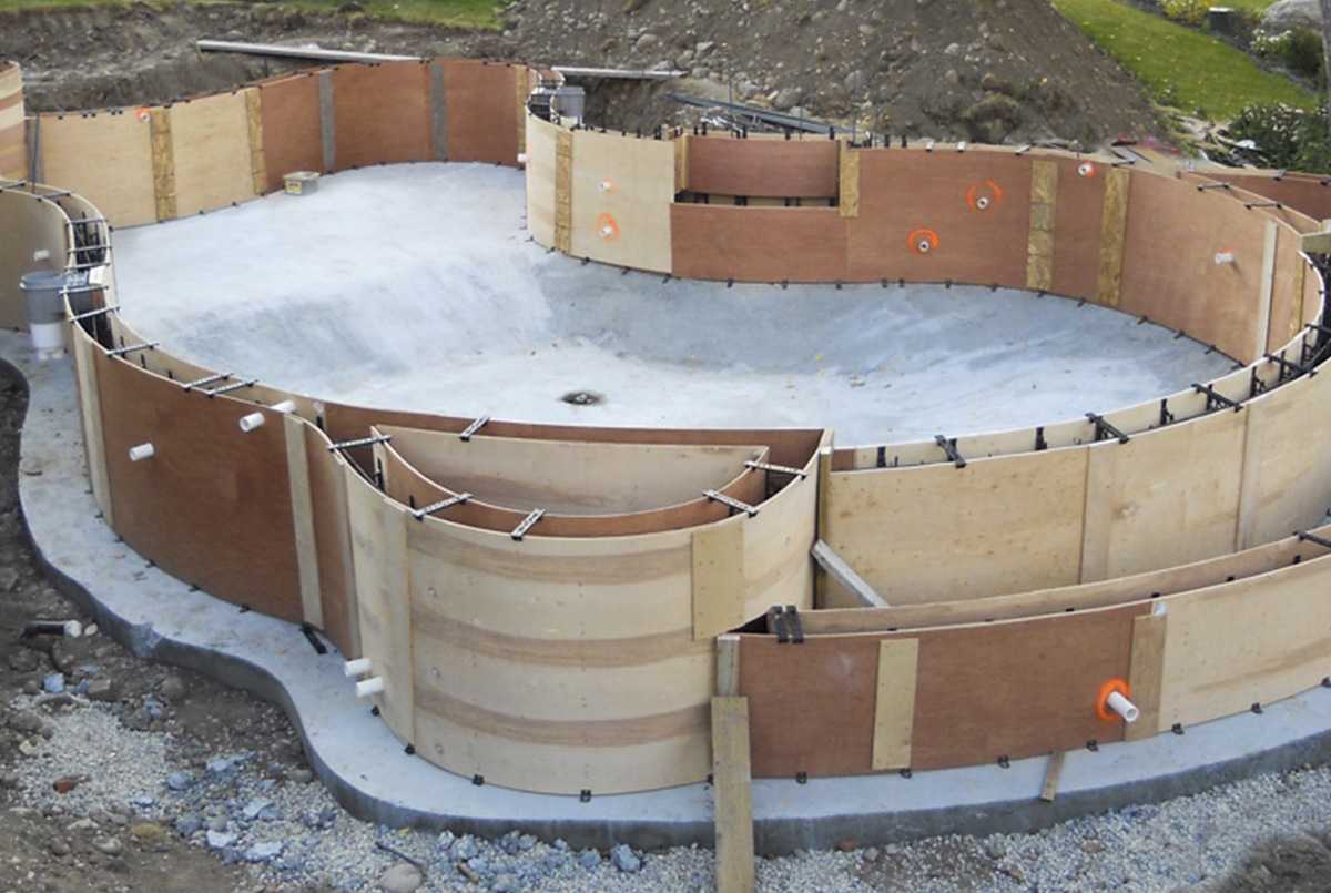 - Послойная заливка бетона – из-за большой плотности, бетон в несъемную опалубку заливают слоями, по 20-25см каждый, с попеременным их уплотнением вибраторами;