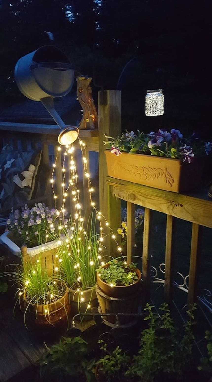 Необычная композиция из лейки и гирлянды