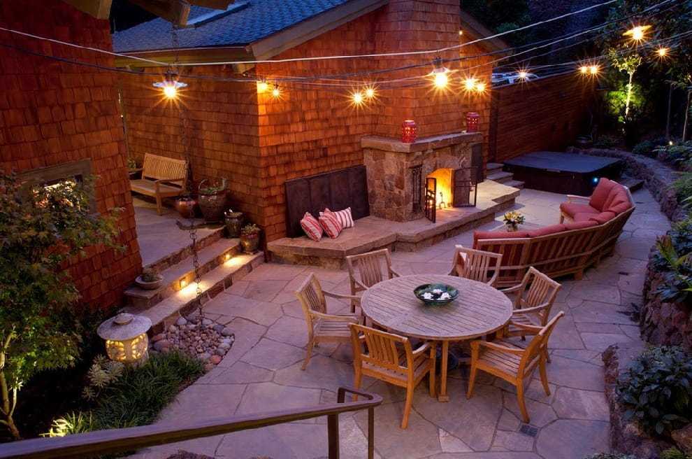 Вы считаете, что двор не может быть освещённым? Ошибаетесь, интересная подсветка каменных ступеней точно приведёт в восторг приходящих гостей