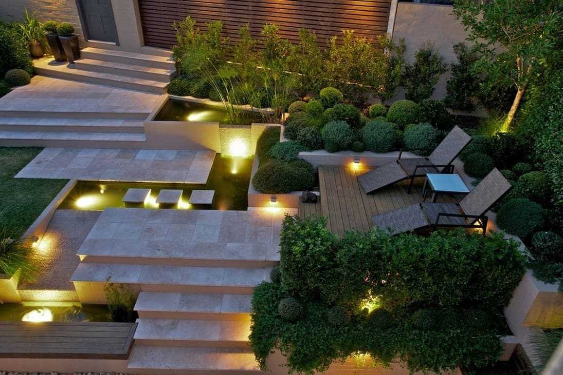 Необычный ландшафтный дизайн заднего двора дома