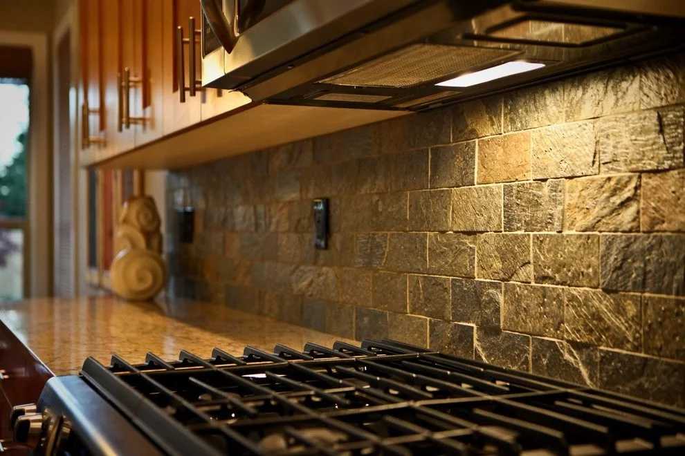 - кафель не реагирует на кухонные температуры, так как его изготовили при сверхвысоких температурах, обычный жар на кухне плитке не повредит;