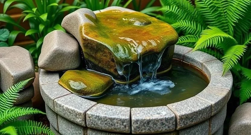 - Декор: Украсьте фонтан камнями, галькой и растениями. (Время: 1 час)