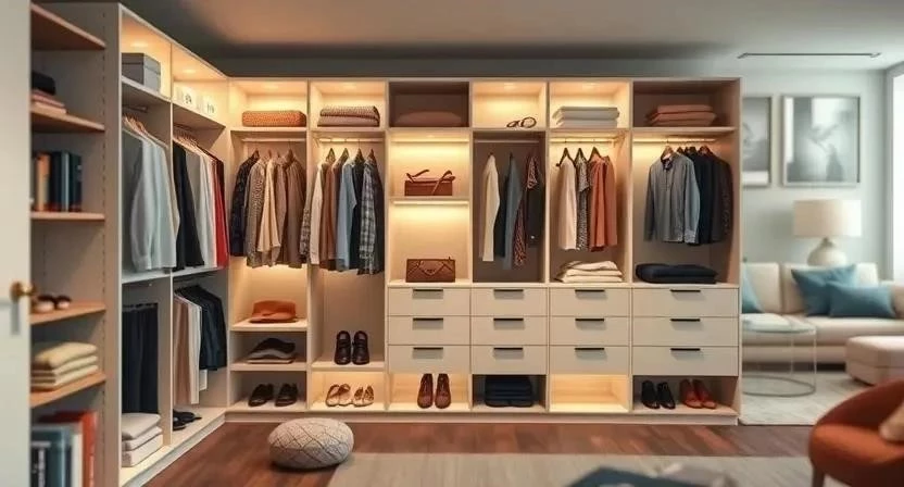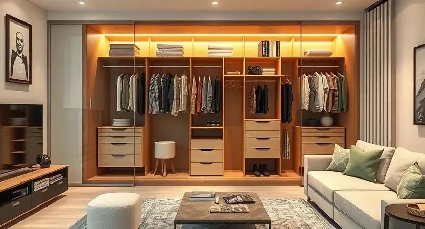 - Сколько стоит сделать гардеробную в гостиной? Стоимость зависит от площади, материалов и сложности работ.