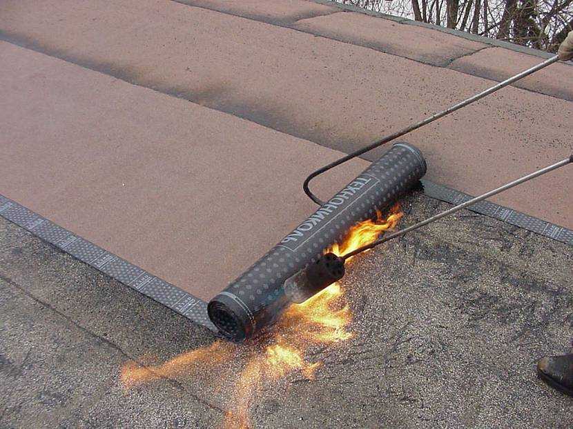 Можно взять самоклеящиеся материалы, на обратную сторону которых нанесен слой битумной мастики. Потребуется газовая горелка, которой будет нагнетаться клеящий слой перед креплением.