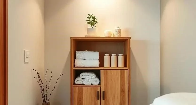 - Шкаф: Предусмотрите достаточно места для хранения полотенец, масел и других расходных материалов.
