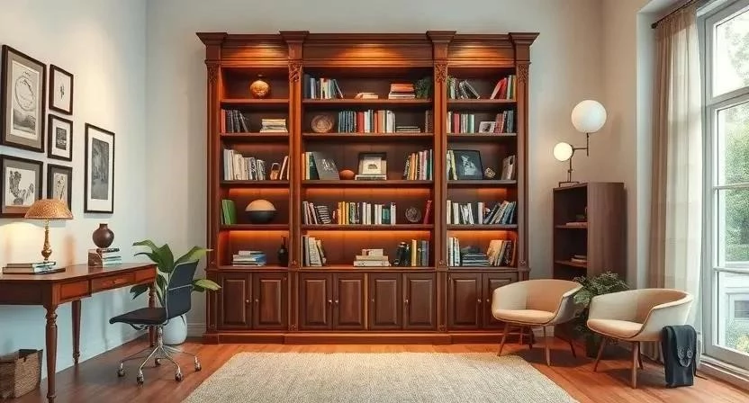 - Полки: Для размещения книг и декоративных элементов. Рекомендуется выбирать полки, которые не загромождают пространство.