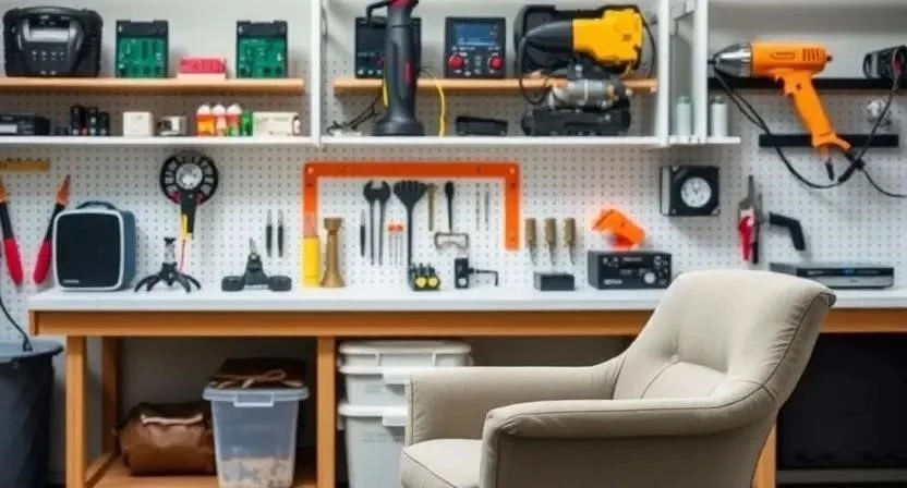 Ответ: Для зоны консультаций необходимо приобрести удобные кресла, стол, возможно, диван. Для рабочей зоны потребуется верстак, шкафы для инструментов и расходных материалов.