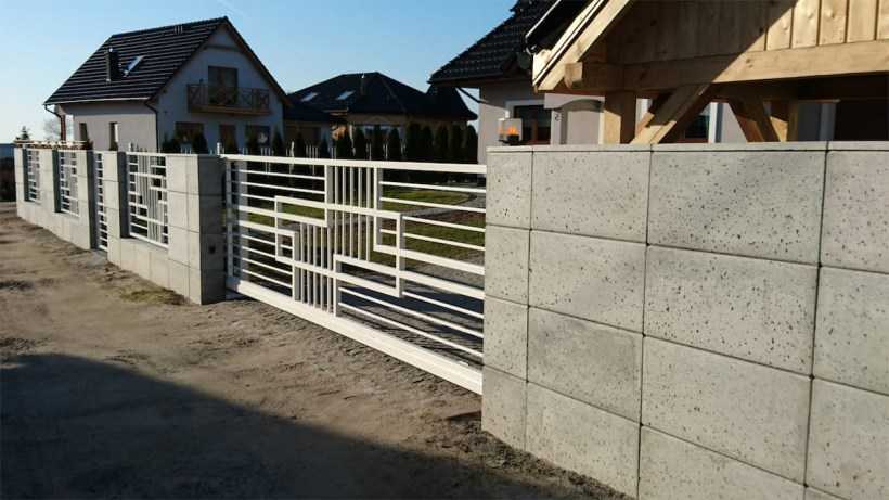 Чтобы сделать бетонный забор своими руками как можно более прочным, после застывания бетона необходимо зафиксировать секции в пазах столбов, иначе они могут раскачиваться от ветра и биться об ограждения или неприятно скрежетать. Для этого с тыльной стороны между секцией и столбом необходимо вбить распорки — деревянные клинышки. Не следует фиксировать бетонные секции в столбах с помощью бетонного раствора. В результате колебаний температуры и влажности бетон будет расширяться или сжиматься. Если плита не будет иметь возможности свободно перемещаться по пазу столба, она расколет его или расколется сама. Также следует учитывать возможное смещение грунта. Где-то он может просесть или, наоборот, вспучиться, при этом не зафиксированная намертво плита просто изменит свое положение, двигаясь внутри паза. Деревянные клинышки не будут жестко удерживать плиту между столбами.