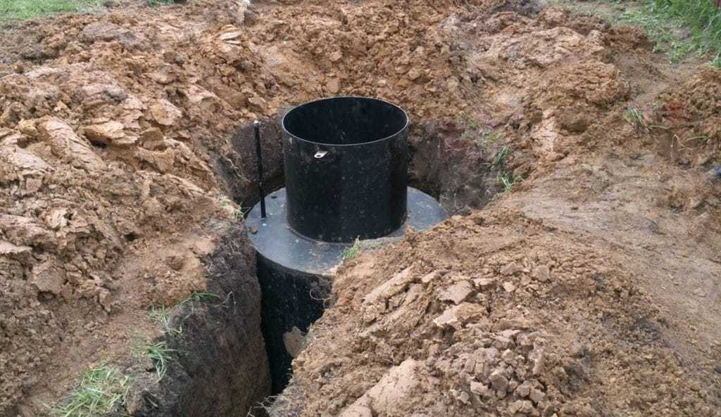 - Выполнение земляных работ — начинается после выбора места под установку кессона из бетонных колец для скважины. После чего для прокладки трубопроводов готовят траншеи, роют котлован под емкость, выполняют подготовительные мероприятия против оседания грунта, засыпают свободное пространство.
