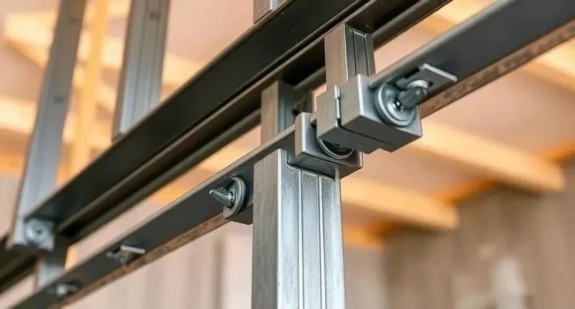 Установка направляющих профилей – основа всей конструкции. Закрепите их по разметке на полу и потолке с помощью дюбелей. Затем установите стоечные профили с шагом 60 см. Для листов гипсокартона толщиной 12.5 мм это оптимальный шаг. В местах дверного проема усильте каркас дополнительными профилями. Монтаж перемычек обязателен над дверным проемом.
