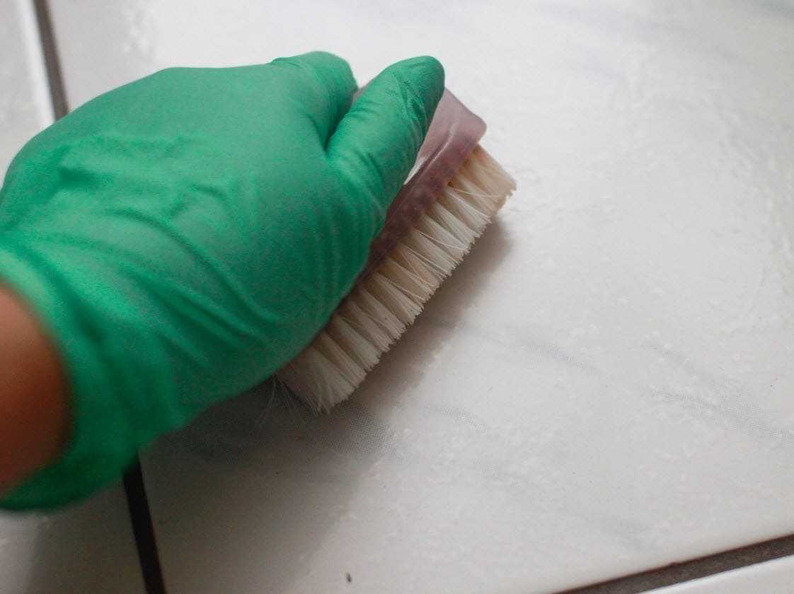 Затем необходимо стереть остатки замазки с самого кафеля. Используйте химические реагенты или народные способы.