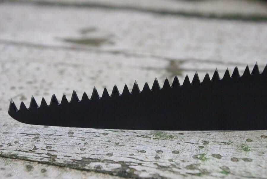 Это, пожалуй, самый важный параметр. Ведь именно от величины зуба зависит скорость и точность среза. Количество зубьев на дюйм полотна принято обозначать коэффициентом TPI. Для более точной работы с материалом необходимо использовать ножовку с большим коэффициентом TPI, то есть, с большим количеством зубов. При выборе полотна с TPI не менее 7–9, и расстоянием между зубьями не более 2–4 мм, поверхность в месте распила будет более ровной и без рваных краёв. Для работы с большими брусьями и садовыми деревьями хорошо послужит полотно с TPI 3–6, расстоянием между зубьями свыше 4 мм. Использование такой ножовки снизит затрачиваемые усилия и увеличит скорость распила рабочего материала.