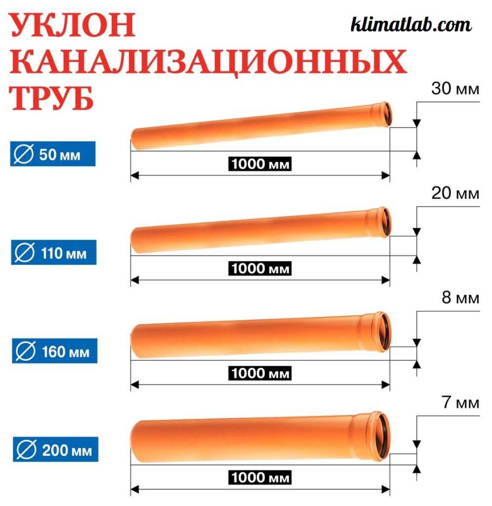 При недостаточном уклоне сток воды будет затруднен или невозможен, а превышение параметра приведет к ускоренному сливу. В результате вода стечет, а часть загрязнений останется в трубе, создавая предпосылки для будущего засора.