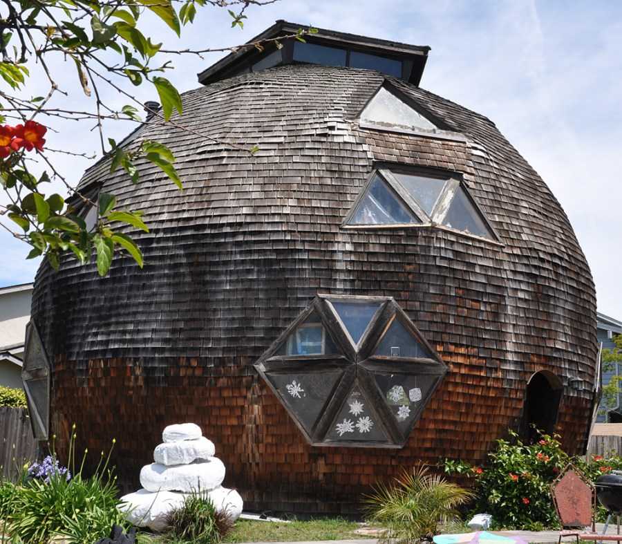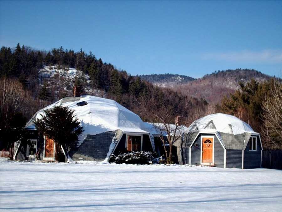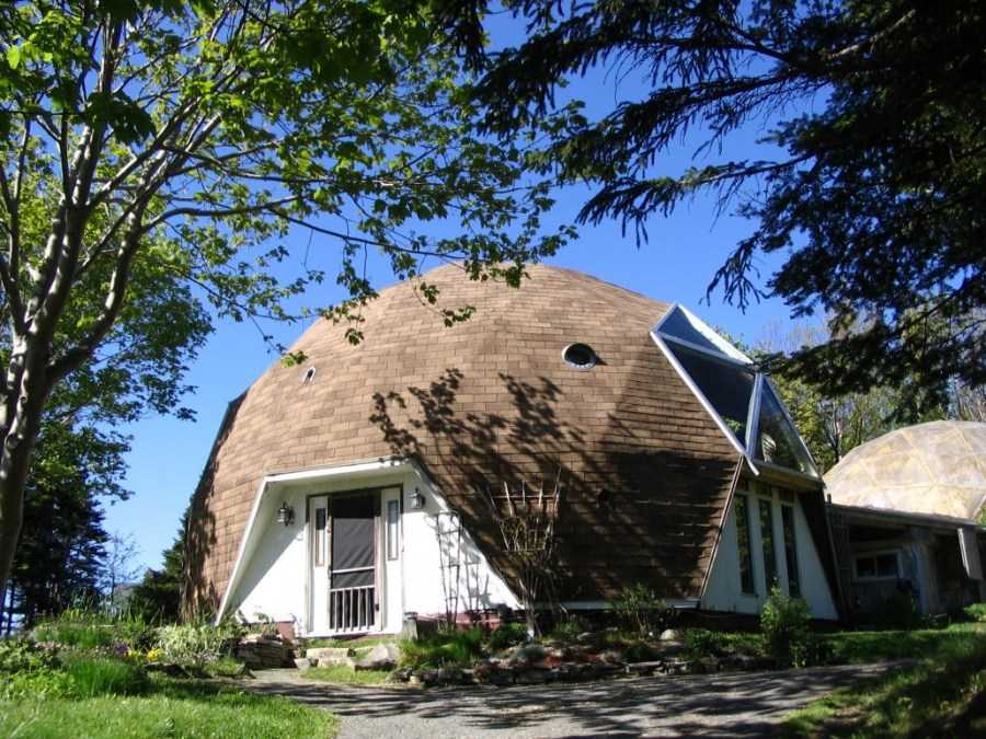 Дом с куполообразной конструкцией изготавливается в форме геодезической полусферы, что позволяет придавать зданию причудливую форму и внешний вид