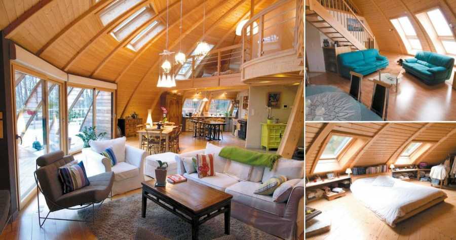 - Так, дом, изготовленный из деревянного бруса и щита по типу геодезической сферы, представляет собой экологически чистое здание, в котором будет и житься, и дышаться легко. При этом даже использование современных утепляющих материалов не снижают дышащую способность древесины.