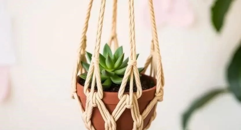 Плетение кашпо для цветов – отличный способ добавить зелени в свой интерьер. Вам понадобится деревянное кольцо, хлопковые нити, горшок для цветов и ножницы. Прикрепите нити к кольцу, используя узел «головка». Затем начните плести квадратные узлы, формируя сетку. Вставьте горшок для цветов в сетку и закрепите его узлами. Обрежьте лишние концы и закрепите их клеем.