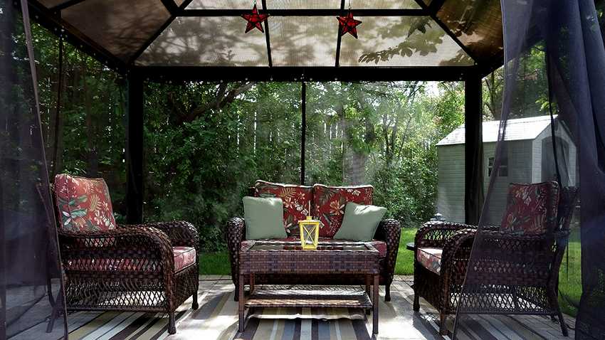 Красивая мебель для беседки может быть сделана из всевозможных материалов в разных стилях