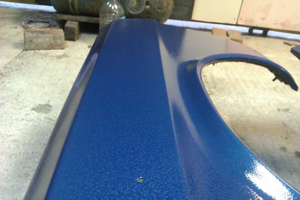молотковая краска по металлу. Любые неровности и мелкие царапины маскируются несколькими слоями эмали.