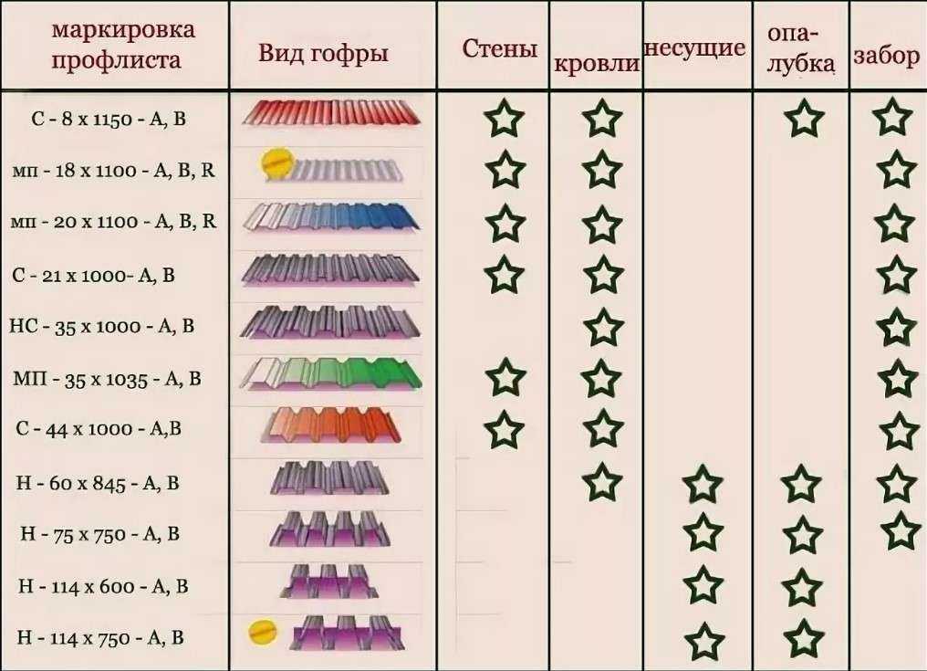 В зависимости от толщины металла и высоты ребер жесткости профилированный лист имеет разную несущую способность. Согласно технических характеристик его применяют: