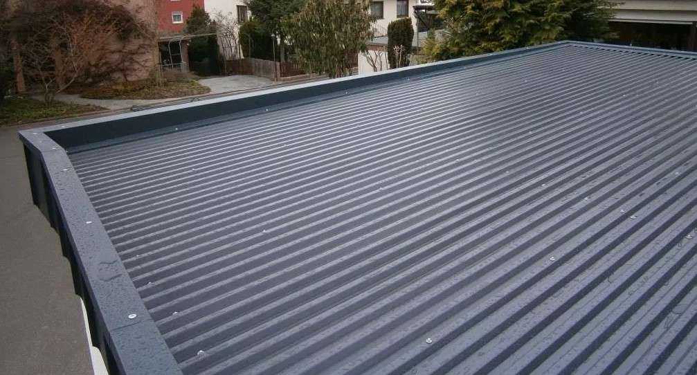 Если вам необходимо выполнить монтаж профнастила на плоскую крышу, ты вы должны с помощью обрешетки обеспечить минимальный уклон для стока воды. При этом места нахлеста листов профнастила дополнительно уплотняются герметиком, как для кровли с уклоном меньше 12 градусов.