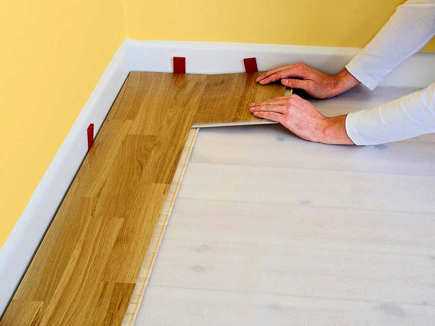 Клинья обеспечивают требуемый зазор между стеной и ламинатом