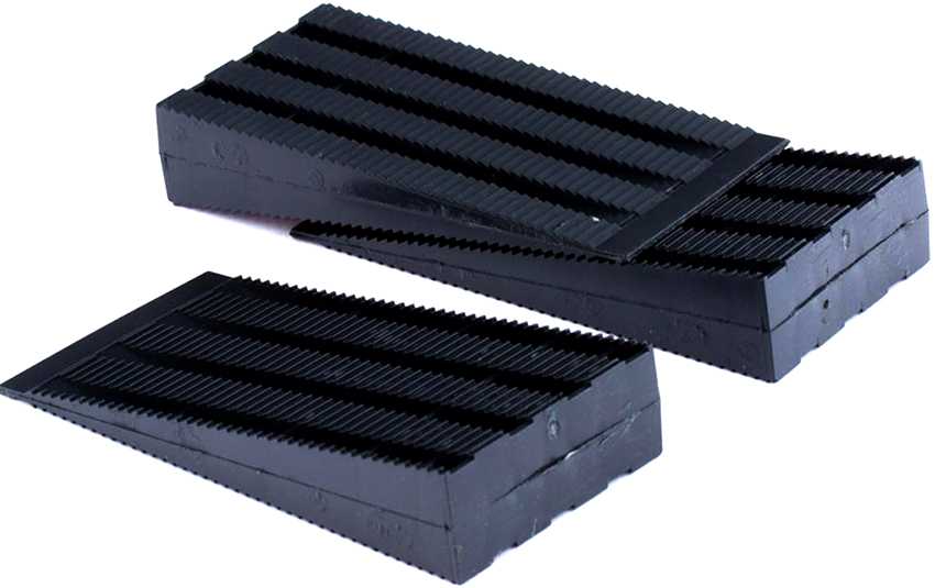 - Благодаря клиновидной форме, а также наличию ребер жесткости, позволяют осуществлять оптимальные регулировки. Это дает возможность избежать соскальзывания в процессе монтажа.