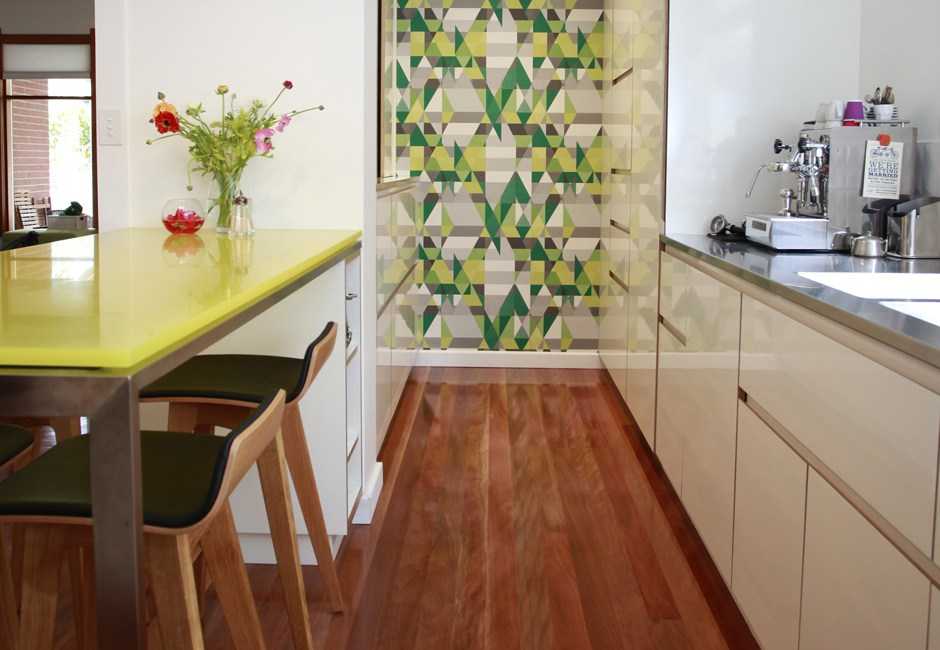 В местах, особенно подверженных воздействию брызг воды и жира, например, над плитой, вы также можете прикрепить стеклянную панель к полосе обоев, которая обеспечит дополнительную защиту стен.