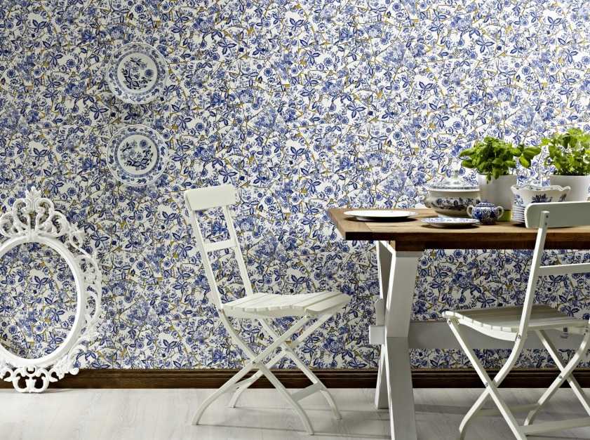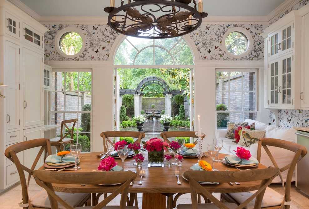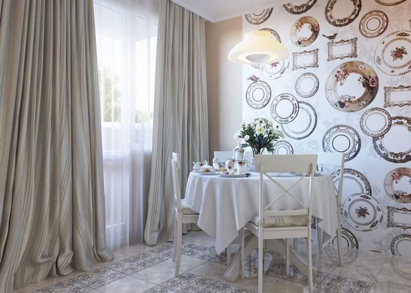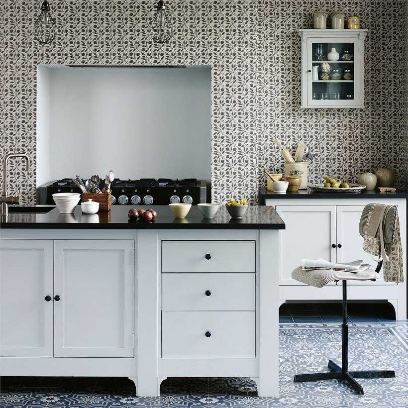 На кухне, обставленной мебелью в стиле кантри, шебби-шик или ретро, отлично будут смотреться обои с цветочными мотивами, полосами или гусиными узорами и те, что напоминают старинную плитку. Если вы мечтаете о кухне в стиле прованс, стоит подумать об обоях с мотивом трав или полевых цветов.