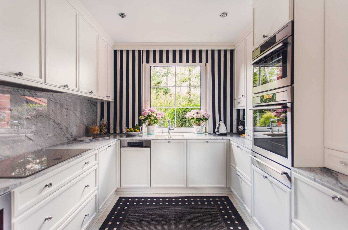 Обои на кухне — отличная идея. Вы можете применить их на всех стенах или в пространстве между шкафами. Посмотрите самое красивое расположение интерьеров кухонь с обоями.