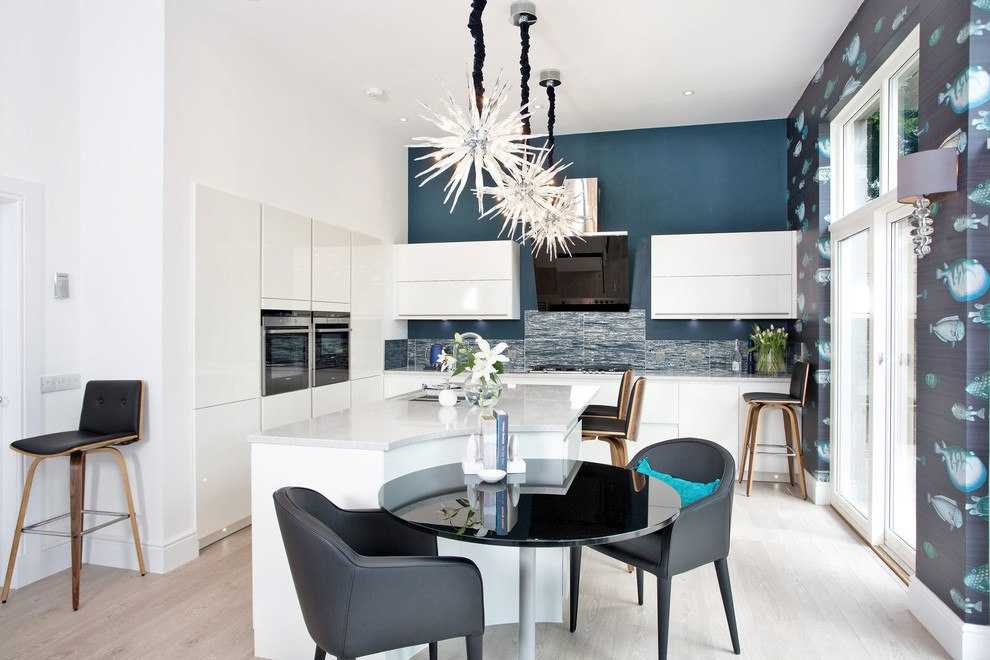 В просторных кухнях, например, на одной из стен отлично будут смотреться 3D обои, фактурные обои контрастного цвета или обои с надписями.