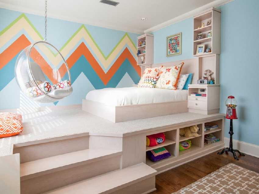 Использование строгой геометрии в сочетании из парочки незатертых оттенков на стене может помочь вам внести в дизайн помещения нетривиальные мотивы и значительно освежить восприятие комнаты.