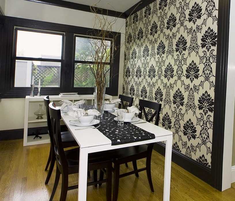 Это решение гораздо более универсально — оно органично впишется в совершенно любой интерьер, даже в далёкий от классики. Главное, чтобы выбранные обои соответствовали общей концепции.