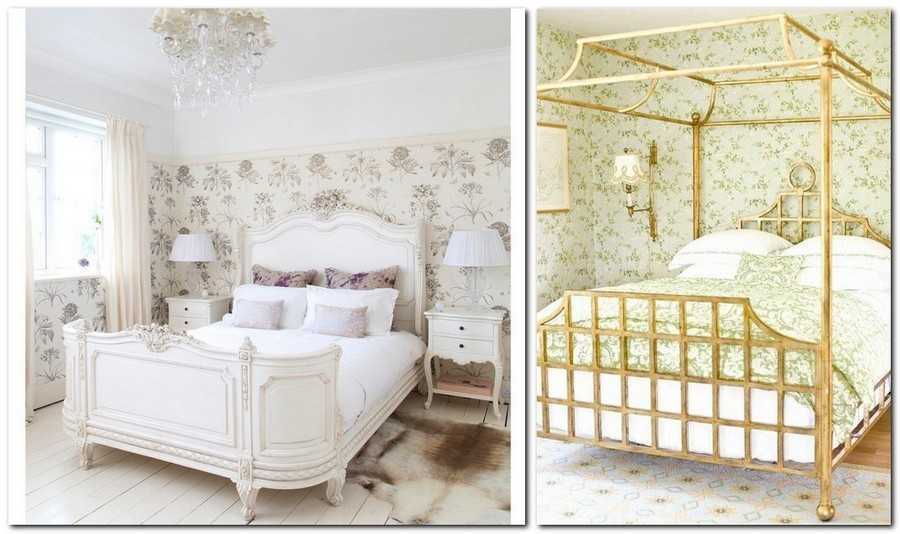 Стиль прованс в интерьере спальни с зелеными потолочными балкамиСплошная нежность и романтика в изысканной палитре настенных обоев