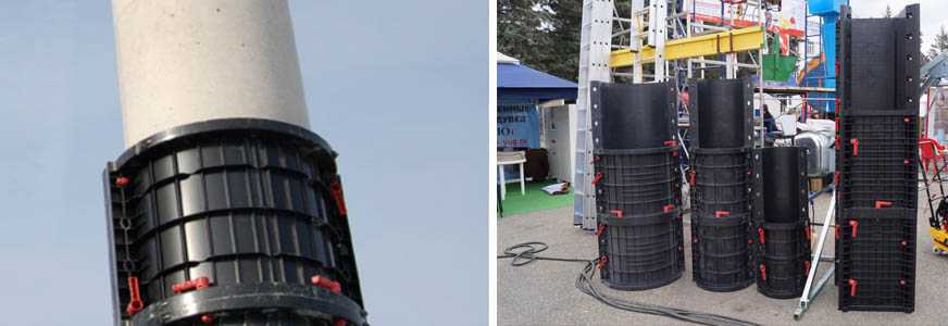 Это наиболее легкая по весу из существующих видов многоразовой опалубки, но при этом и самая ненадежная. Ее монтаж требует аккуратности в действиях, так как можно повредить хрупкие щиты и детали крепления. Пластиковая опалубка производится для круглых и прямоугольных колонн.