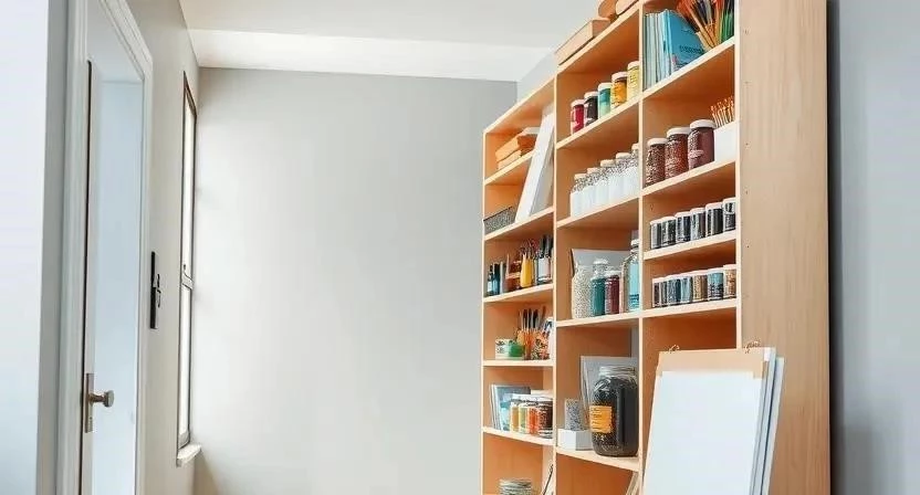 - Открытые полки: Идеальны для демонстрации работ и быстрого доступа к материалам.