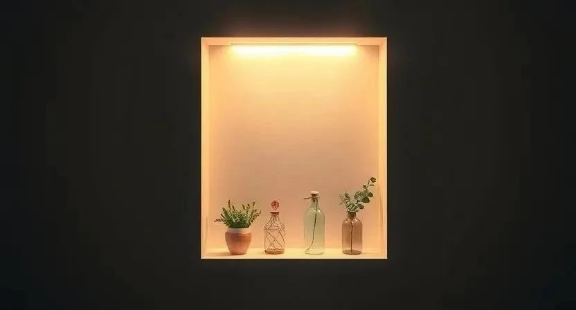 - Подсветка из светодиодной ленты: светодиодная лента – это универсальный инструмент для создания подсветки ниш, полок, зеркал и других элементов интерьера.